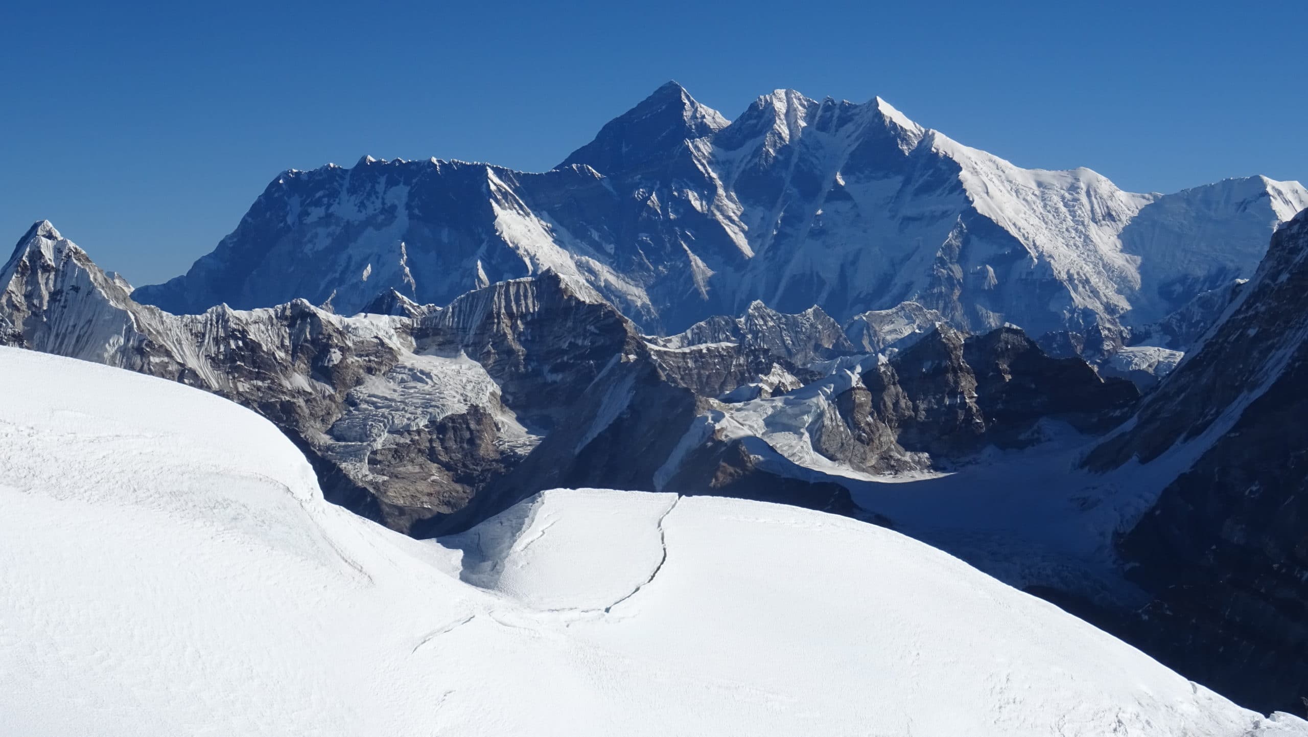 Wir starten in den Himalaya-Vorbergen und arbeiten uns in 9 Tagen hinauf bis in unser “Basislager”, eine nette Lodge in Khare (4900 m). Wir haben ausreichend Zeit zur Akklimatisation eingeplant – eine zentrale Voraussetzung, um den 6461 m hohen Zentralgipfel des Mera Peak zu erreichen. Nach einer Nacht im Zelt am Hochlager auf ca. 5.800 m machen wir uns über die Normalroute an den Gipfelanstieg. Von hier oben belohnt ein fantastischer Ausblick auf die höchsten Berge des Himalaya: Es grüßen die fünf Achttausender Everest, Lhotse, Kanchenjunga, Makalu und Cho Oyu.