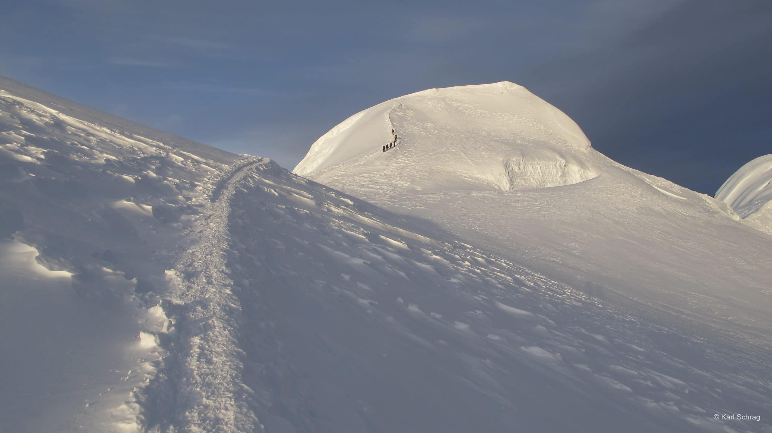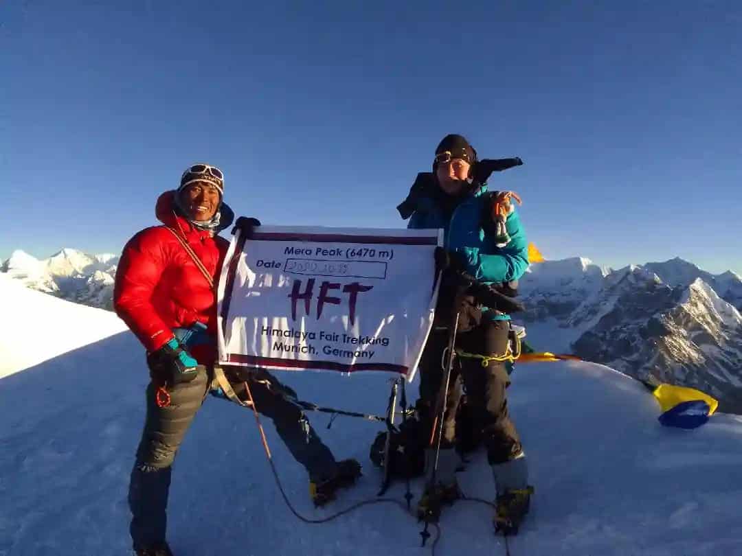 Der Trek zum Mera Peak ist genau das Richtige für alle, die einmal Expeditionsluft schnuppern möchten. Wir führen die Tour überwiegend als Lodgetrek durch. Für die Gipfelbesteigung (optional) sind allerdings zwei Nächte im Zelt erforderlich. Die Besteigung des Mera Peak (6461 m) ist nichts für Anfänger, weist aber für erfahrene Alpinisten keine größeren technischen Schwierigkeiten auf. Gletschererfahrung, d.h. ein sicherer Umgang mit Eispickel, Steigeisen, Seil- und Sicherungstechniken ist Voraussetzung..
