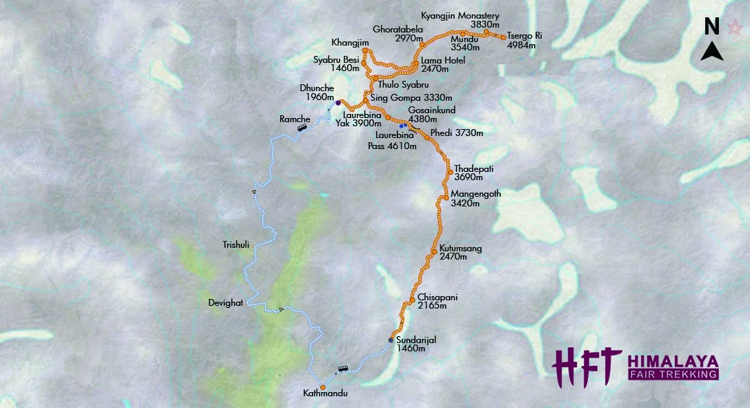 Weitere Höhepunkte sind das schöne Dörfchen Kyanjin Gompa mit seiner Käserei, die Heiligen Seen von Gosainkund (4380 m) und die Überschreitung des Laurebina Pass (4600 m).