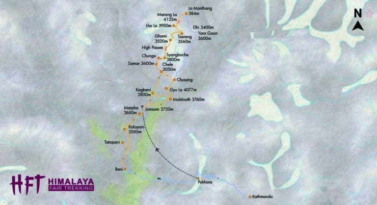 Einreise nach Mustang, weiter durch das Khali Ghandaki Tal nach Chele (3050 m)
