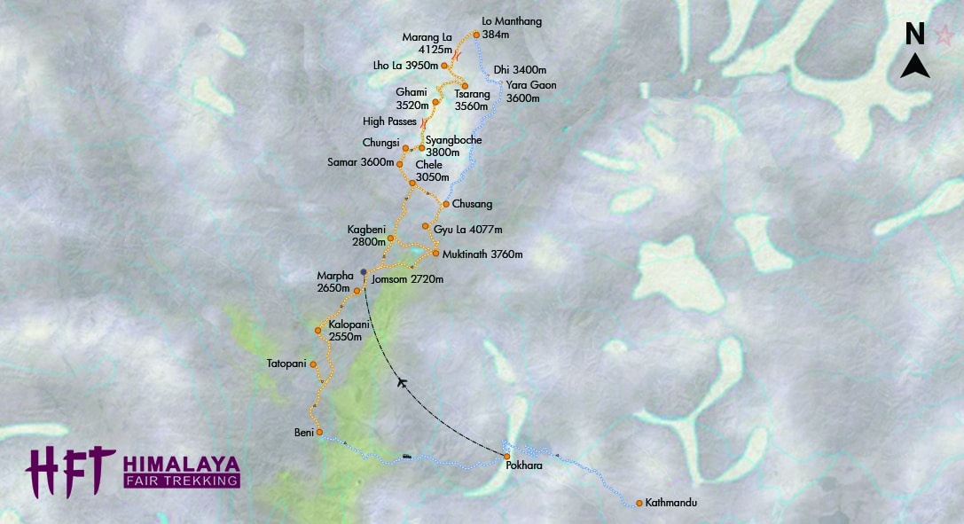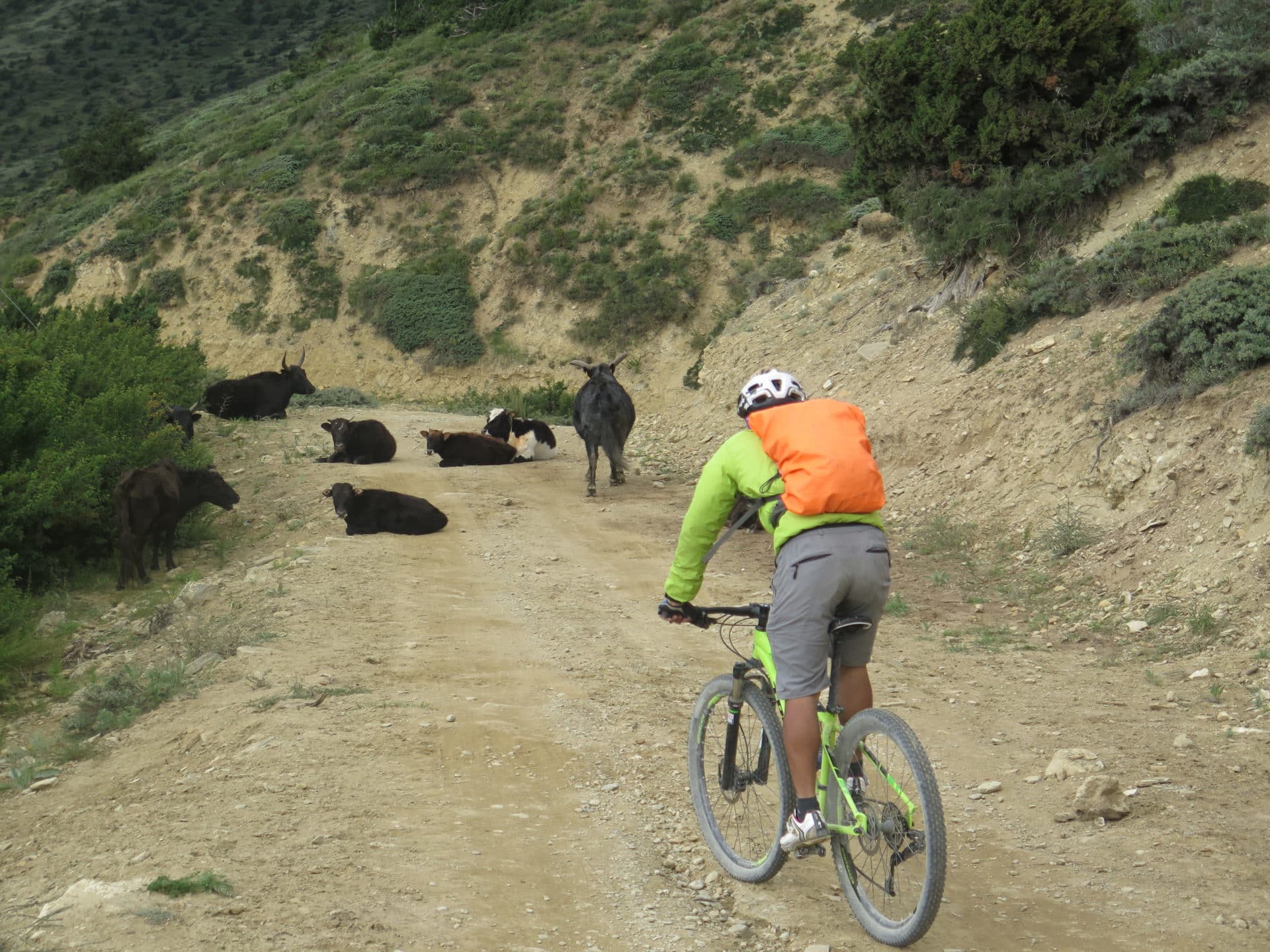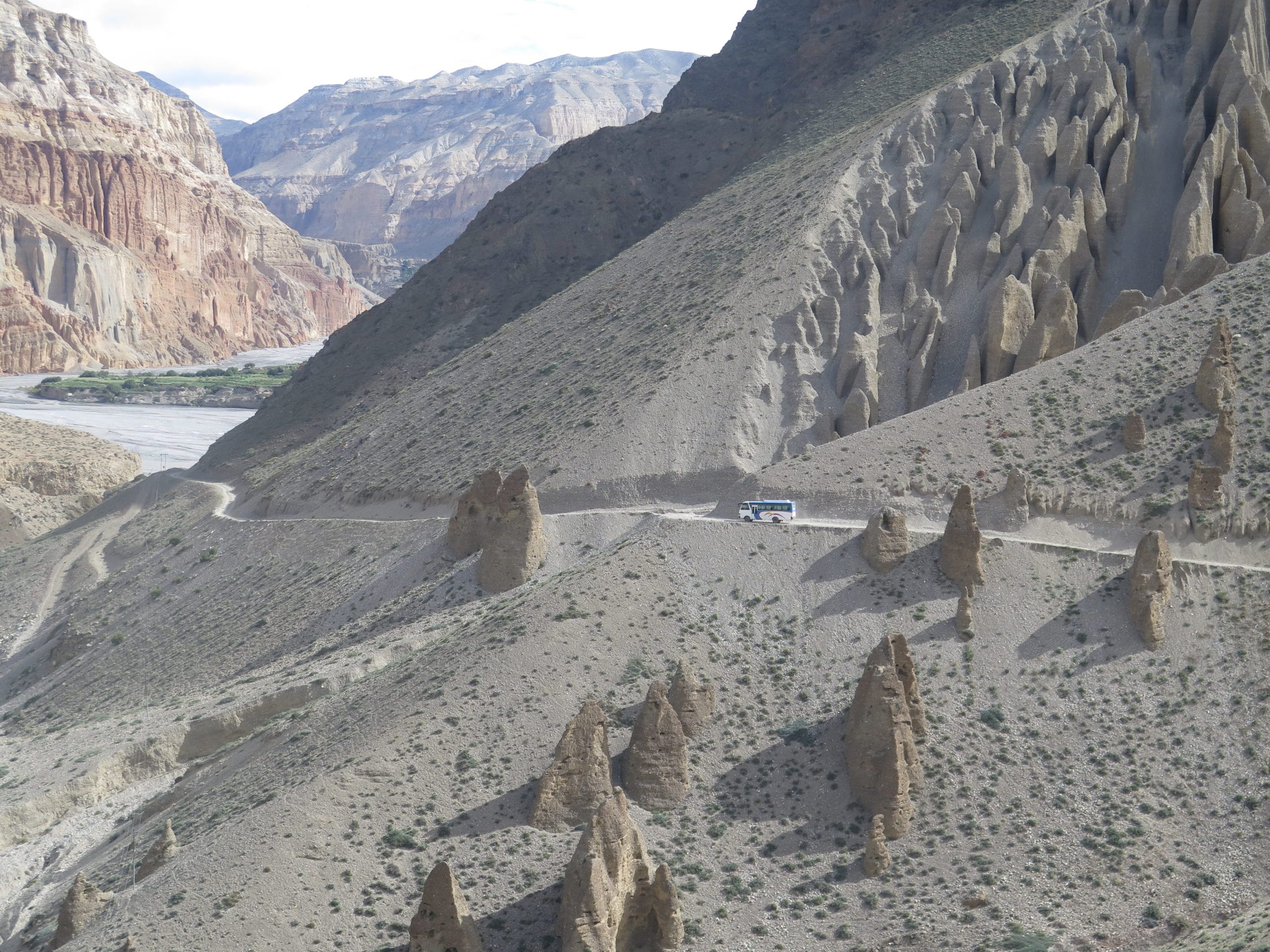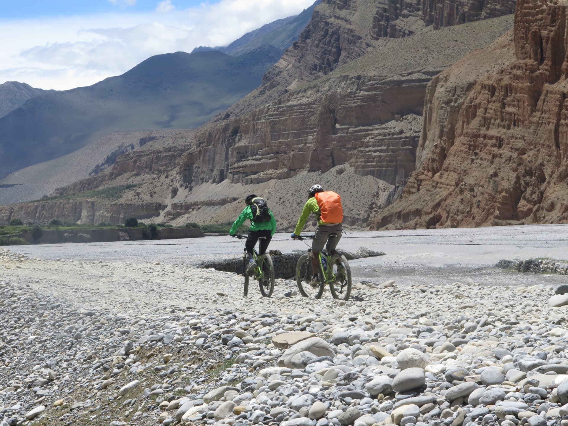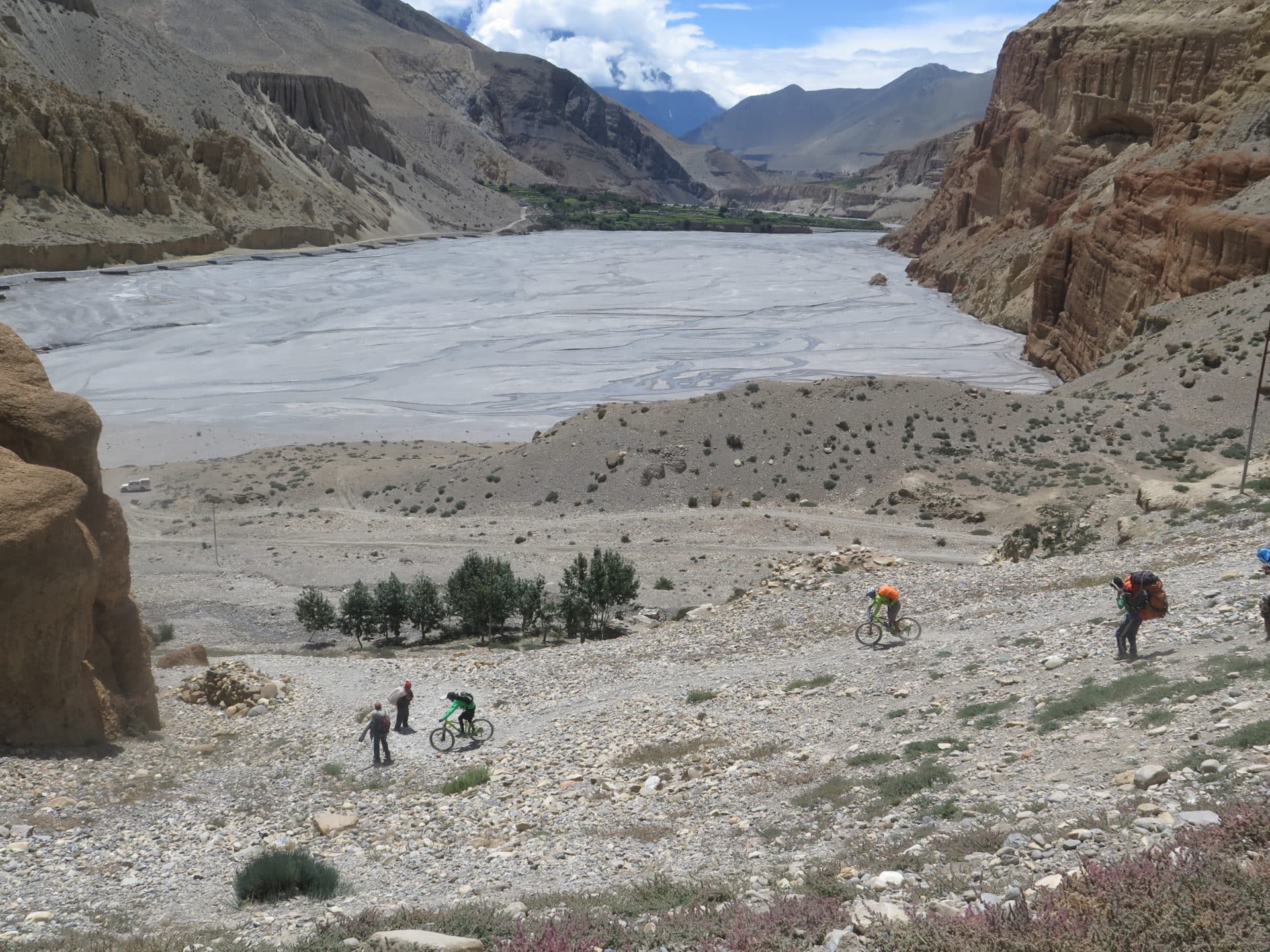 Mit dem Mountainbike geht’s vom Khali-Ghandaki-Tal über wilde Pisten und Trails durch Upper Mustang bis zur Grenze nach Tibet. Lho Mantang, die Hauptstadt des ehemaligen Königreichs, liegt auf einer trockenen Hochebene. Der Weg dorthin geht vorbei an bizarren Felsformationen. Immer wieder begeistern uns herrliche Ausblicke auf Annapurna und Dhaulagiri. Je nach Lust, Können und Kondition haben wir die Wahl, uns nur auf Jeep-Strecken (Pisten) zu bewegen, oder aber auf technisch anspruchsvollen Singletrails. Einzelne wenige Trage-Passagen sind unvermeidbar. Definitiv ist diese Tour eines der ganz großen Abenteuer für Mountainbiker in einer der entlegensten Ecken der Erde.