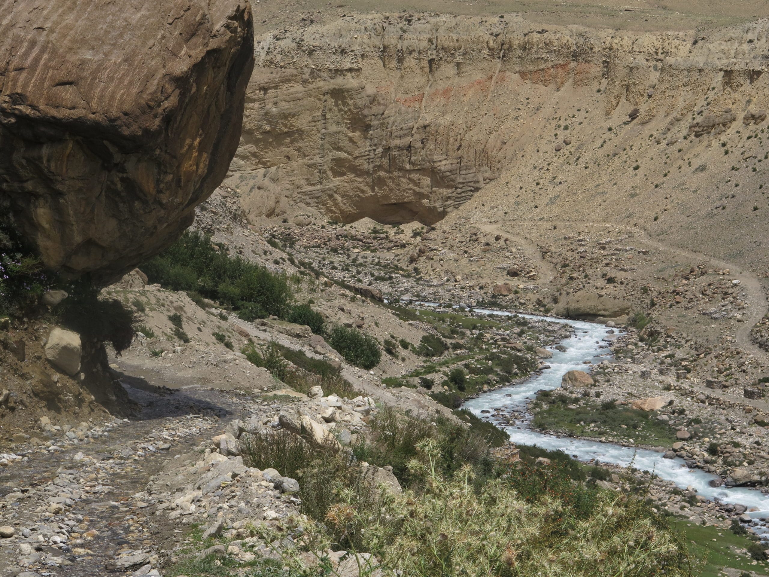 Mit einigem Schieben über den Marang La (4125 m) nach Ghami (3520). Alternativ auf der Piste über Tsarang